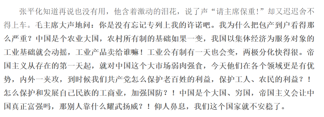 就在教员1965年重上井冈山,思考初心及未来,并写下“世上无难事只要肯登攀”之际,他充满忧心的问:“我为什么把包-产-到-户看得那么严重?”