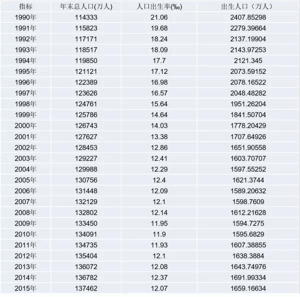 (1990年-2015年出生人口数据)